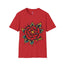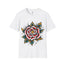 A colorful rose flower design adorns this unisex softstyle T-shirt, giving off a vibrant and cheerful vibe. Perfect for those who love floral patterns and want to add a pop of color to their wardrobe. Ideal for everyday wear and can be worn to casual outings, parties, and gatherings. Great for adults looking for a comfortable and stylish tee to express their personality.
